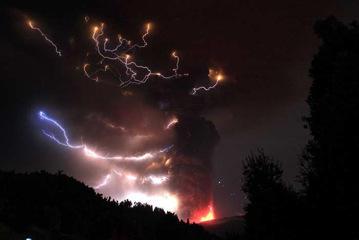 Em Gênesis 1:1 a Bíblia afirma que "No início criou Deus os céus e a terra."Muitas pessoas acreditam que nosso mundo surgiu de uma explosão. Elas estão certas! Quando Deus disse para a terra ficar num canto e a água em outro extremo, toda a crosta terrestre em suas placas tectônicas devem ter feito o mesmo que o vulcão do Puyehue vez. Jorrou magma fervendo pra cima, criando nuvens gigantescas com tempestades de raios e tudo o mais.